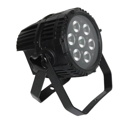 This is a heavy duty LED PAR, contained in sturdy metal housing is a weatherproof light. Multicolor diodes RGBWAUV allow to shine and project any color possible.