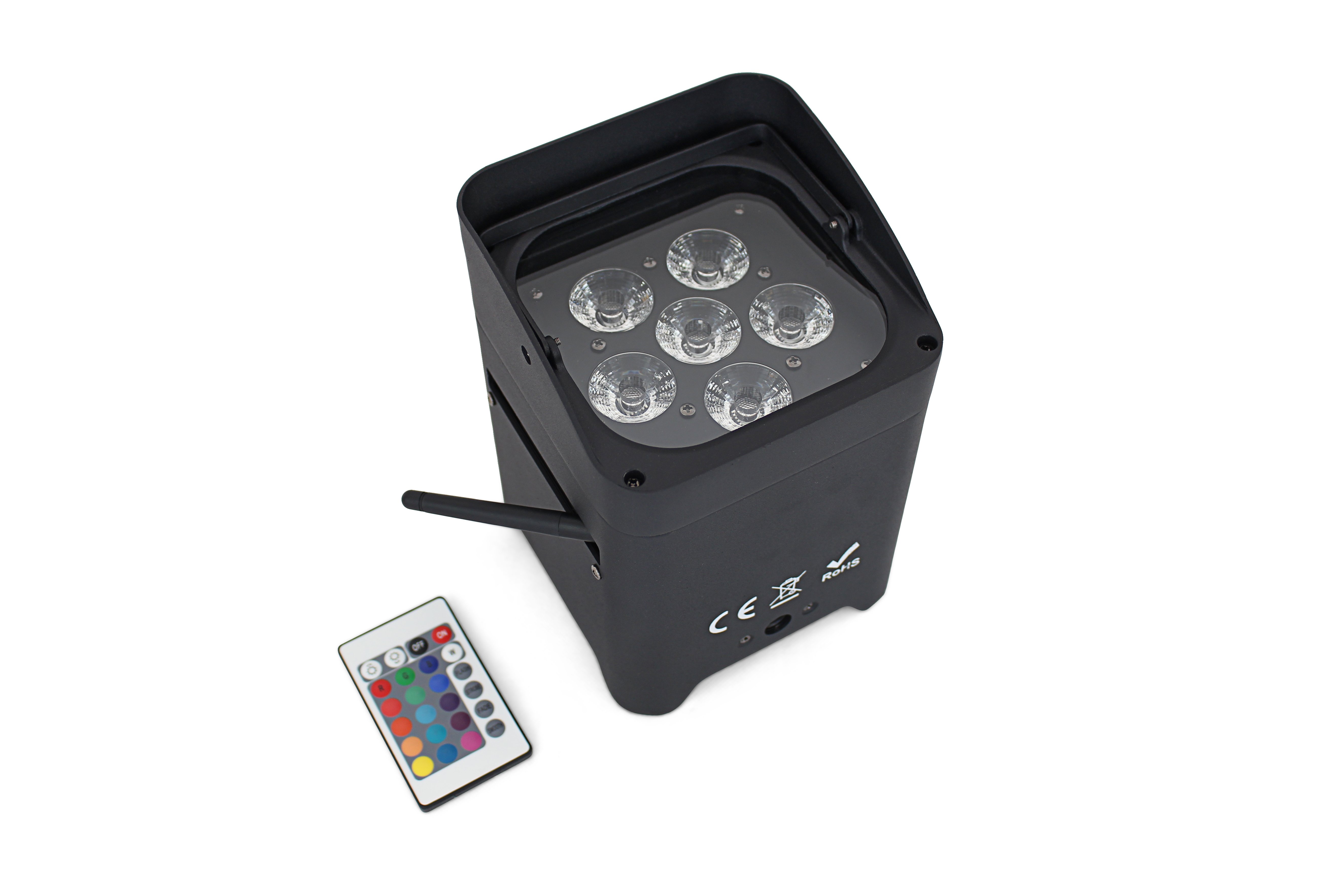 Battery powered LED UPLIGHT, 6x15W RGBWA+UV.