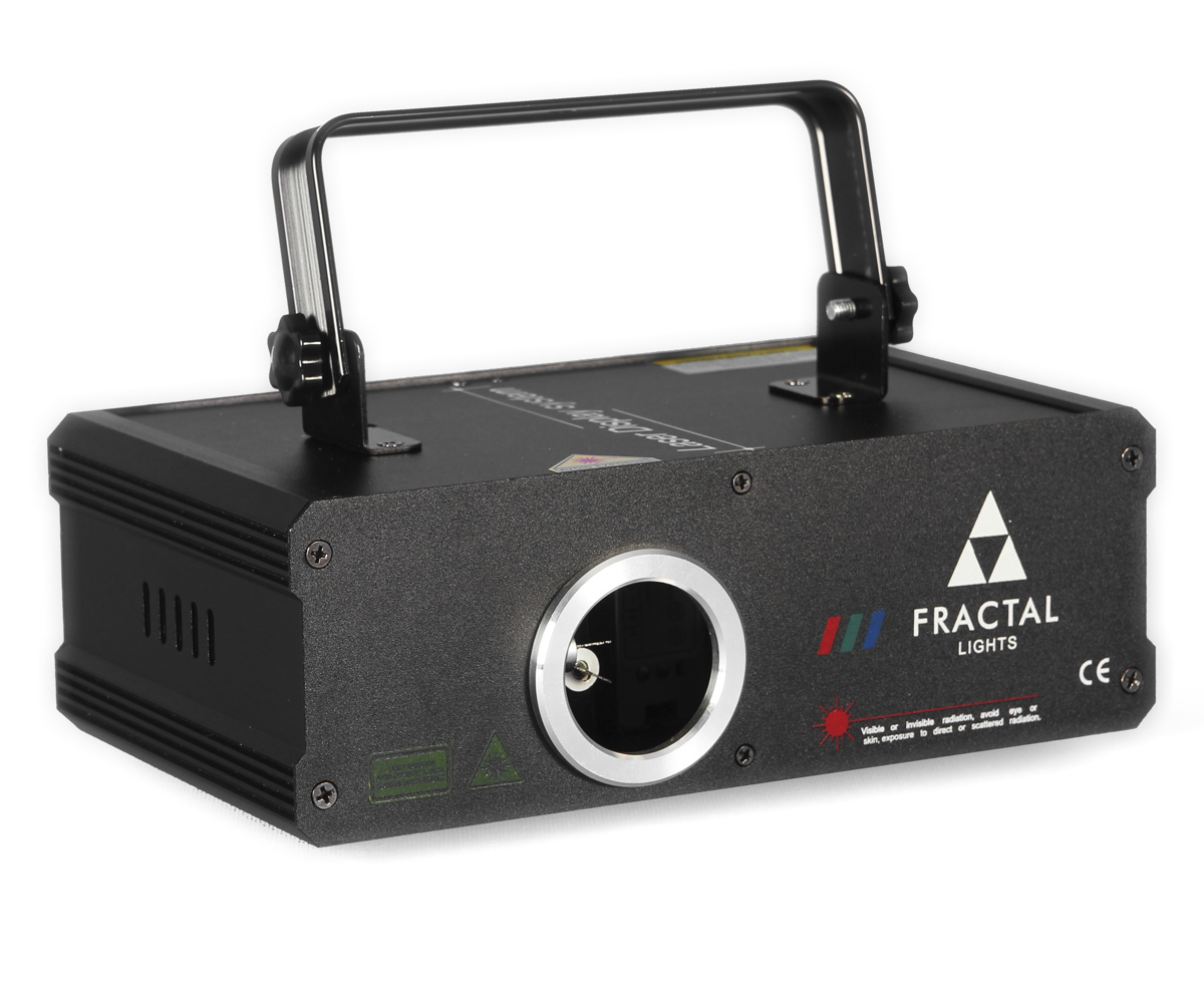 Fractal Lights professional laser with high power emitters (600mW combined). Compact black metal enclosure. Can be controlled in DMX mode (13 channels) and work in automatic or sound mode thanks to built-in microphone with sensitivity adjustment. Perfect for each club, party, or disco. There is SD card slot available, to load user defined patterns.