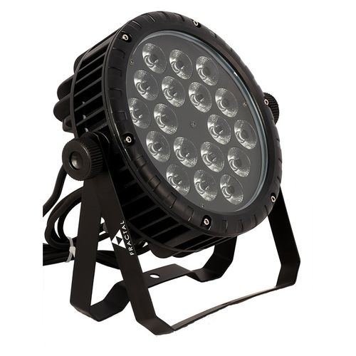 Strongest IP65 LED PAR, eighteen LED RGBW allow to cover any surface with strong colorful light. Hermetically sealed enclosure ensures good thermal conduction, double brackets can act as stands.