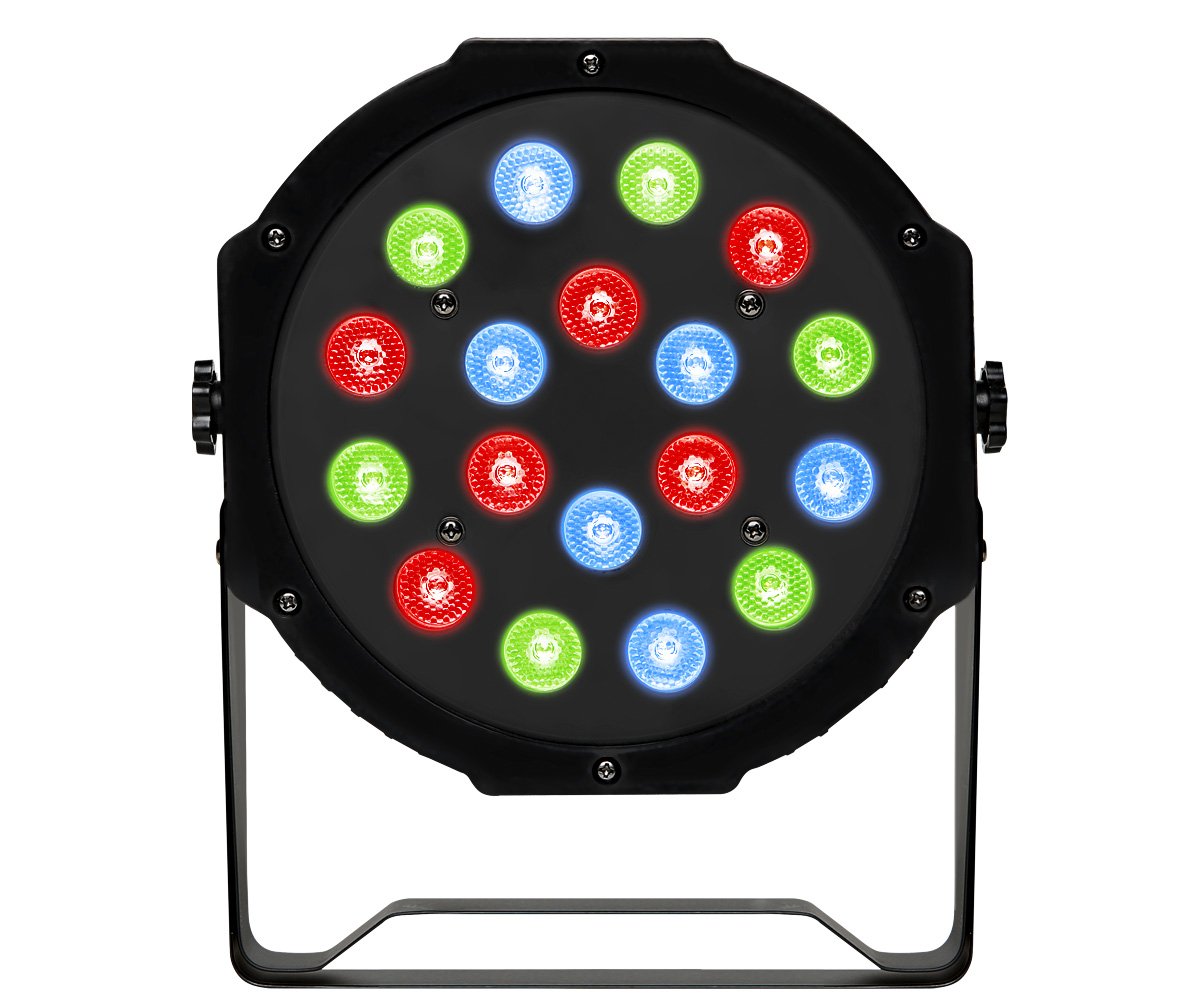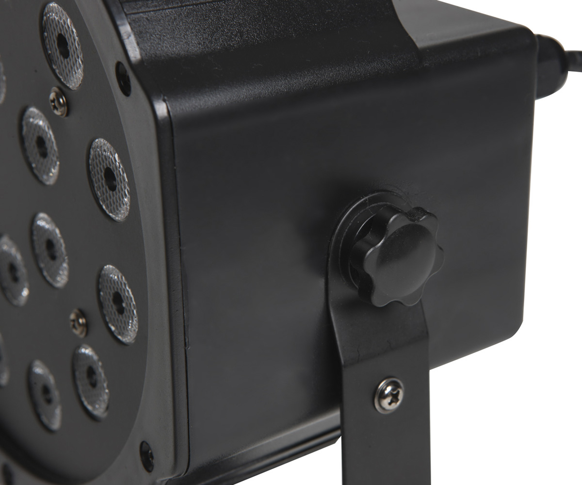 Fractal LED PAR 18 x 1W is a lightweight and efficient spotlight with standard LEDs. With included presets, you can control each colour separately. Easy operation. Includes a mounting, which can be used as a stand.